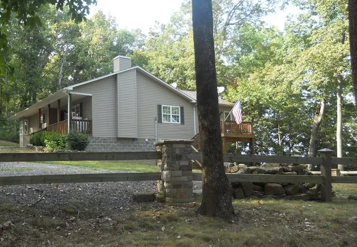 FOR LEASE for $1,200./mth. OR SELL. Lake view from large back deck. Sunroom with large windows for lake view. Hardwood and tile. Carpeted bedrooms. Stainless appliances & washer/dryer included. Vaulted ceiling in living room. Stone fireplace with gas logs. Dead end street. Fire pit in patio area. Covered front porch. Tile countertops.