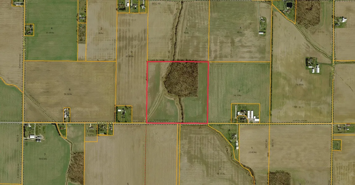 New listing - 40 acres of farm ground -approximately 25 tillable, balance of acreage is woods, ditch and road frontage