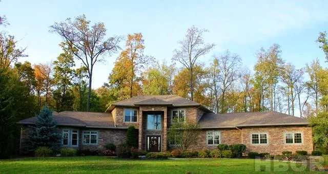 Gorgeous stone home down a long paved driveway, nestled in the trees. Home sits on 11 acres that includes fenced pasture and privacy with mature trees. 70 x 100 Outbuilding includes a private bathroom, kitchen and office space as well as warehouse with overheard garage doors. Outbuilding is able to be heated with it's own outdoor woodburner. 2nd Outbuilding (40 x 60) is set up perfectly with stalls ready to go and open to the pasture. 16 x 40 Lean-to building. The home has master suite on the main floor with updated bathroom and walk in closet. Great kitchen with lots of cabinetry and open to the dining room. Livingroom features a floor to ceiling stone fireplace. Finished basement and security system. Tranquil back patio