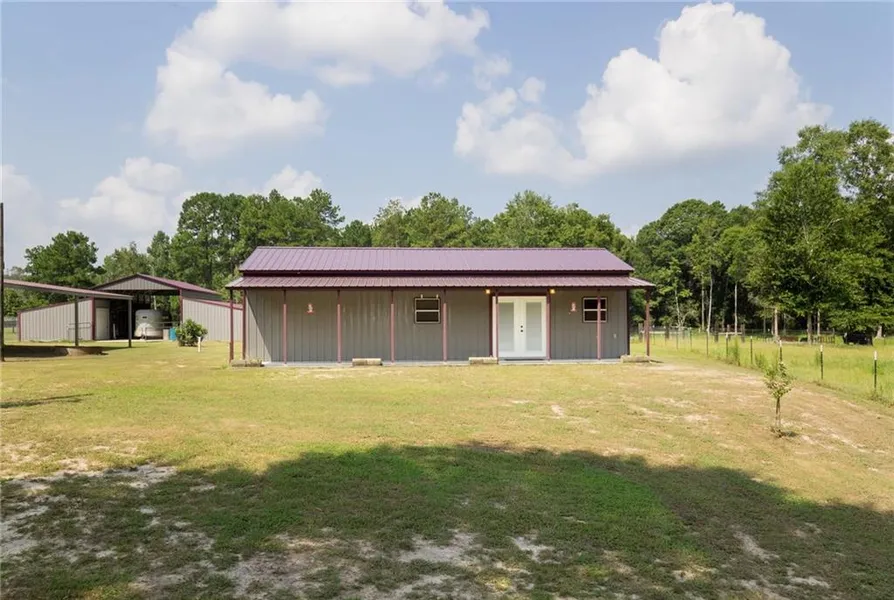 This 2-Year-old Shop House is situated on 7 acres with Pecan and Fig trees. The home features an open floor plan, neutral paint colors though out, beautiful stained concrete floors, spray foam insulation as well as a generous sized master bedroom. There is an existing house pad ready to build your dream home. There are three separate pastures and the entire property has pasture fencing. One pasture has 2 watering holes and the corral is made of all metal. There is a 52x40 Barn equipped with electricity and water and an abundance of storage space. Chicken coups and hog pens have automatic watering systems. There is a 45x24 Camper Shed with a 12-foot-high ceiling, and a 50 and 30-amp service with water and sewerage. There is a 15x20 shop for all your hobbies and your very own green house. The property has so much to offer.