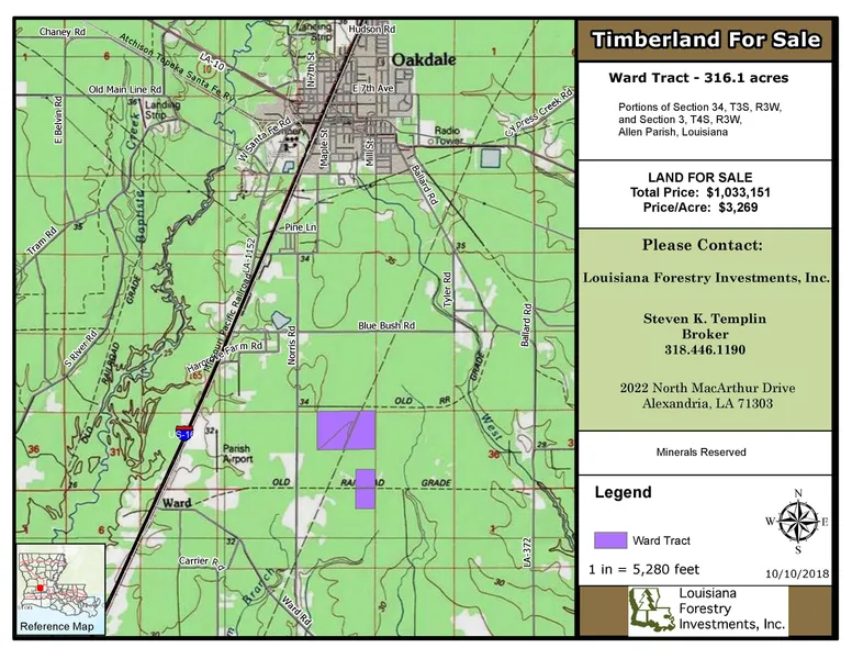 Note: Timber volumes were estimated by a 3rd party. Templin Forestry, Inc. and Louisiana Forestry Investments, Inc. do not guarantee any data/information. Buyers are encouraged to make their own timber volume estimates and determination of suitability for any use. Acreages are not guaranteed. Prices are for the entire tract.