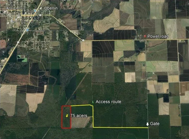 75 Acres for sale located off Highway 165 in Oberlin. Good hunting tract at an affordable price. Timberland with white tail deer and small game opportunities. Great location, minutes from town and near West Bay and Marsh Bayou WMA. If you are looking to start your own hunting club or a place for your family to hunt this tract is worth a look. Call for more information.
