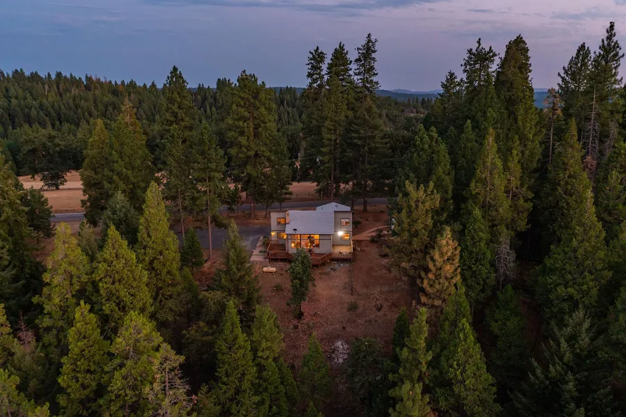 Distinctive, attractive style home on almost 7 acres. Beautiful lines with rustic cabin character marries this home with it's natural environment. Prime location in hills outside of the town of Volcano. The main floor offers the master suite, living room, kitchen and laundry room. The living room wall of windows face north capturing wonderful sunset views. Upstairs includes 3 additional rooms (one bedroom and two bonus areas for more bedrooms, office or recreational space) and a full bathroom! Large open decking gives opportunity to enjoy outdoor mountain living. Land offers usable space, views, and easy access on and off Shake Ridge. The driveway is paved, gated and has plenty of parking. The two car garage is attached with a covered breezeway entrance into the laundry room. Fenced back yard has two sheds for extra storage. Your Mountain Home Awakes! Seller offering up to a $20,000 credit at closing towards a rate buydown, repairs, or buyers closing cost!
