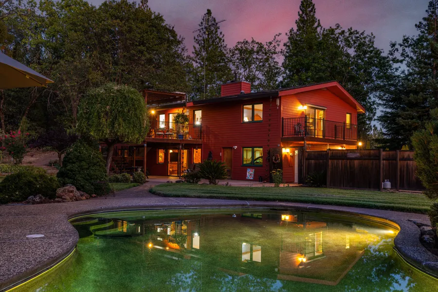 Custom ranch home - First time on the market in 27 years! A 450' freshly repaved driveway leads to this stunning 4 bed/3 bath residence. Many upgrades include extensive hand-milled cedar paneling & doors throughout, new carpet, leach lines & roof. A dream kitchen with custom solid oak cabinets and 28' of Sierra Granite from the same vein as Half Dome, Heartland stove, and extra storage space with large walk-in pantry. The formal dining room with picture windows allows you to take in views of the front yard and horse pasture. Just off the oversized living room you can step onto the deck and take in the sweeping north views overlooking the pool, lawns, trees, hillsides and beyond. The master features an en-suite bath with double shower and double sinks and a deck with west views. An office/bedroom enjoys north/east views. The oversized laundry room is a must-see and features access to the private patio with an outdoor shower. Downstairs offers two bedrooms, full bath, family room and large mud room leading to garage. Some of the property's extras include a storage shed, 1 car garage, rv clean-out, 2-stall barn, fenced area for horses, and garden. As a certified wildlife habitat, squirrels and multiple birds live on site. Deer, turkey, rabbits and other animals frequent the area every day. An exceptionally quiet and serene location and a perfect dark night sky for stargazing, this one-of-a-kind property is an experience not to be missed.