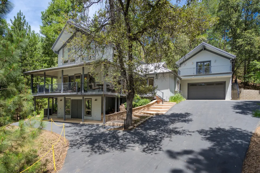 Architecturally unique inspired home nestled in the pines. Details abound in this custom-built home located on a private cul-de-sac. Summers will be enjoyed on the covered porch, looking out over the pond and property. Rich wood encased windows enhance the views of natures beauty outside. The living room is grand, with a soaring vaulted ceiling, full wall of floor to ceiling windows, next to the massive stone hearth. Open and bright the floor plan incorporates living between the living room and kitchen. Check out this kitchen, granite counter tops with butcher block inlaid, center island with dining bar and top of the line appliances. Large mud room and laundry room, perfect for country living. Located on the main level is the master suite, with private balcony and tree top views. The en-suite bath offers a jetted tub, large shower and walk-in closet. The bonus loft has great views over the living room and through the trees. Guest will enjoy a private suite above the garage, equipped with a full bath and kitchenette, and two decks. On the ground level a double door entry opens to a private wine/beer bar, with two wine refrigerators, sink and custom cabinets. The covered porch can be enjoyed all summer, sit back and enjoy the views and privacy looking over the property to the pond. Bring your fishing poles, the pond is stocked! Minutes to the town of Pine Grove and Volcano for entertainment and dining, less than an hour to Kirkwood Resort, numerous lakes, and so much more. Come live the lifestyle youve been dreaming about; you wont be disappointed.