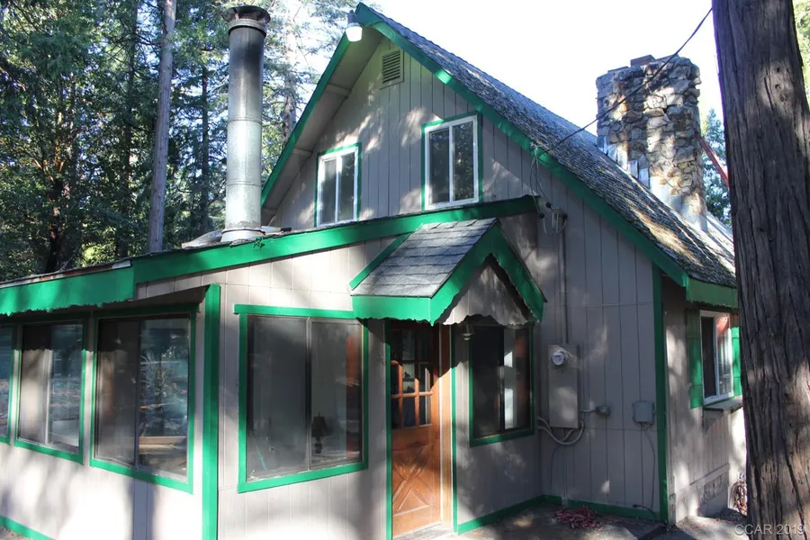 VIDEO AVAILABLE !Take another look ! Fresh new exterior & interior paint. Usable , level 1.79 acres . Home sits back off the road. Enjoy all the large cedar and pine trees. Inside is a unique style with large full length windows, vaulted ceilings , tons of natural wood.3 total fireplaces 2 stone and insert.kitchen has nice views from all the windows. Charming 3 story chalet style home. Large deck off the kitchen. New flooring, bathrooms are both updated. Lower level has outside access . Extra large storage building. 70x70 fenced in garden area. Central heat.