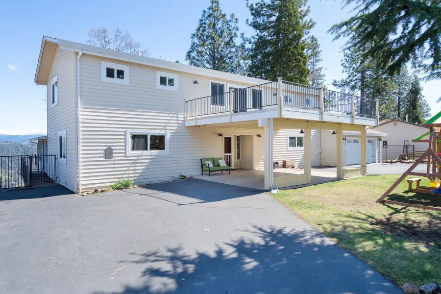 Stunning views, great location, come experience foothill living at its finest. Stepping into the entry you are greeted with an abundance of natural light, vaulted ceilings throughout and sweeping views that can be enjoyed from all rooms of the home. The living room is warm and inviting with a wood burning stove and has an open layout to the kitchen, perfect for entertaining. The large kitchen includes lots of counter space, a dining bar and breakfast nook. Three of the four bedrooms have ensuite bath, and an office. Outside you can find a large deck with great views, a two car attached garage, and planting boxes for a vegetable or flower garden! Come and see this beautiful home! State Farm may be able to write a standard policy on this home!