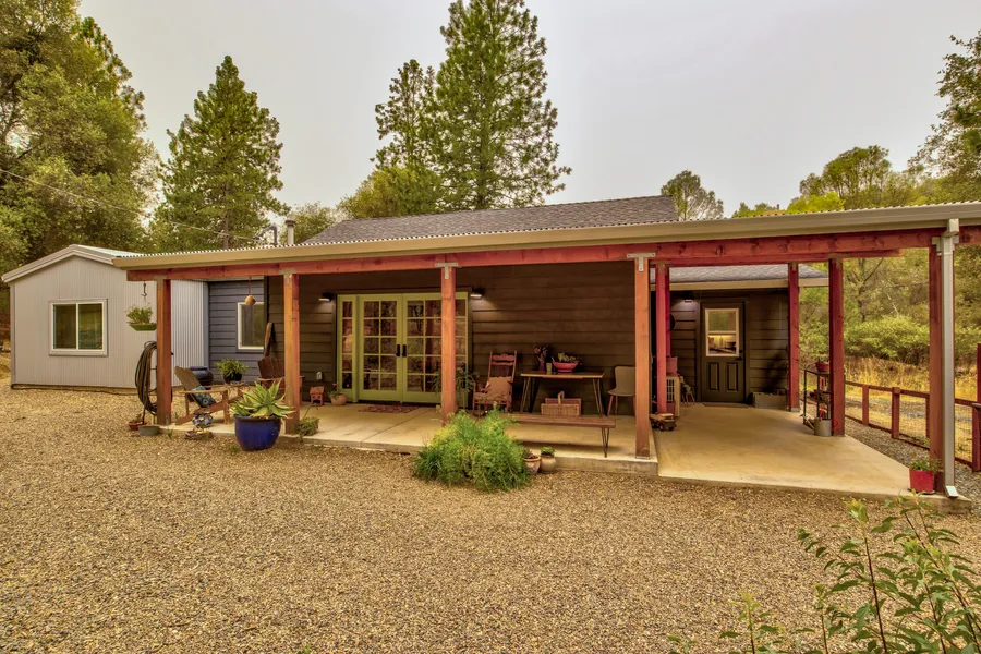 Gorgeous turn key home rebuilt and architecturally designed addition completed in 2017. Beautiful kitchen with soapstone counters, all new cabinetry and appliances and white oak, wide plank wood floors. Situated next to a huge year round pond. Pond is stocked with bass and mosquito fish. Enjoy the flora and fauna that surround the pond, Herons, ducks & frogs! The wonderful addition contains a family room and 2 bedrooms. Master suite is spacious with 12' ceilings, lots of windows to take in the scenery, a vintage barn door to the large walk-in closet. Antique custom vanity with dual vessel sinks in the spacious master bath along with a walk in tiled shower with stone accents. This home has a mix of a classic bungalow style with modern farmhouse vibe. 2 stall metal barn with concrete floors and insulated tack room. Pastures are all cross-fenced with turnouts and a good sized arena. BLM property adjacent to the property provides nice riding options. Huge workshop and garden shed.