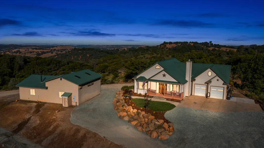Extraordinary views to Mt. Diablo and the Sierras. Wake up to the sunrise, and enjoy amazing sunsets almost every night. Single level home with a great layout. Big country kitchen with a chefs stove and huge island. Private master suite with a standing shower and jetted tub. Guest rooms are spacious with ample closet space. Huge shop with an attached room with full bath, wood stove, laundry hookups. Could possibly be converted to an accessory dwelling unit. There is a huge building pad with water, conduit for electrical, for another home, or build a barn. This home has a custom chicken coop with lighting, water and the chickens can stay! Enjoy fresh eggs daily! 40 acres with trails and lots of useable land for a vineyard, orchard, or animals.