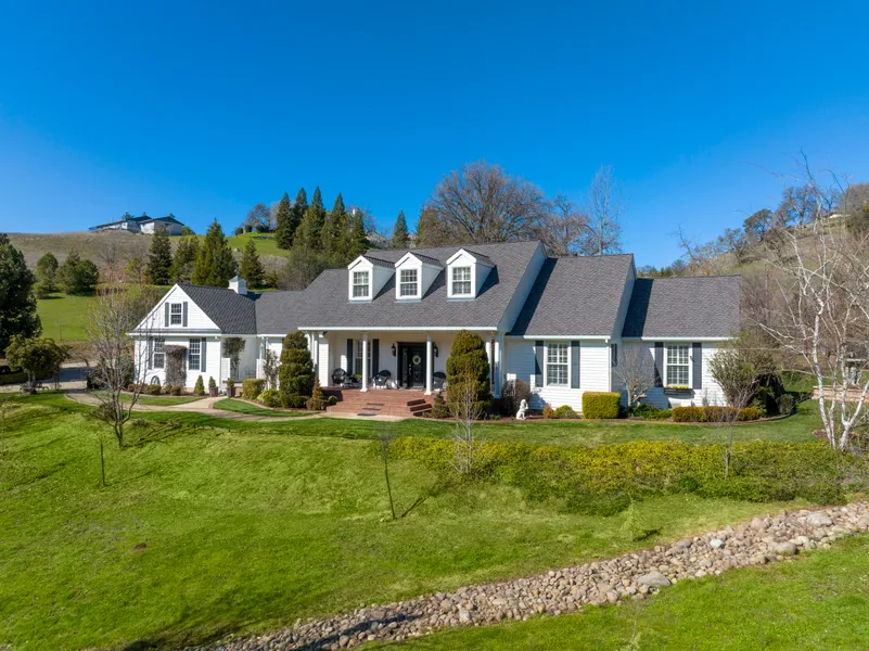 Welcome to this gated, modernized farmhouse, resting on 20 acres with character & history embedded in its roots. Initially serving as a stage coach stop in the 1800s, the original shed still remains intact. Accented by the brick porch, stained glass windows, and breathtaking views of the valley. Inside, be greeted by wood floors, updated finishes, 4 fireplaces, arched doorways, formal sitting area leading to the formal dining, and access to the main living. The chef's kitchen highlights two-toned cabinets, breakfast nook, Miele espresso machine and an expansive island with stove and pot filler. The primary suite features a show-stopping glass window, marble fireplace, private patio & stately en suite with fireplace and marble bathtub. Upstairs, enjoy the game lounge with a wood beam that could be used as additional living or media room. The property also features a gated, tree-lined pool and a close-knit community, within walking distance to Downtown Sutter Creek with family owned boutiques, restaurants & more.