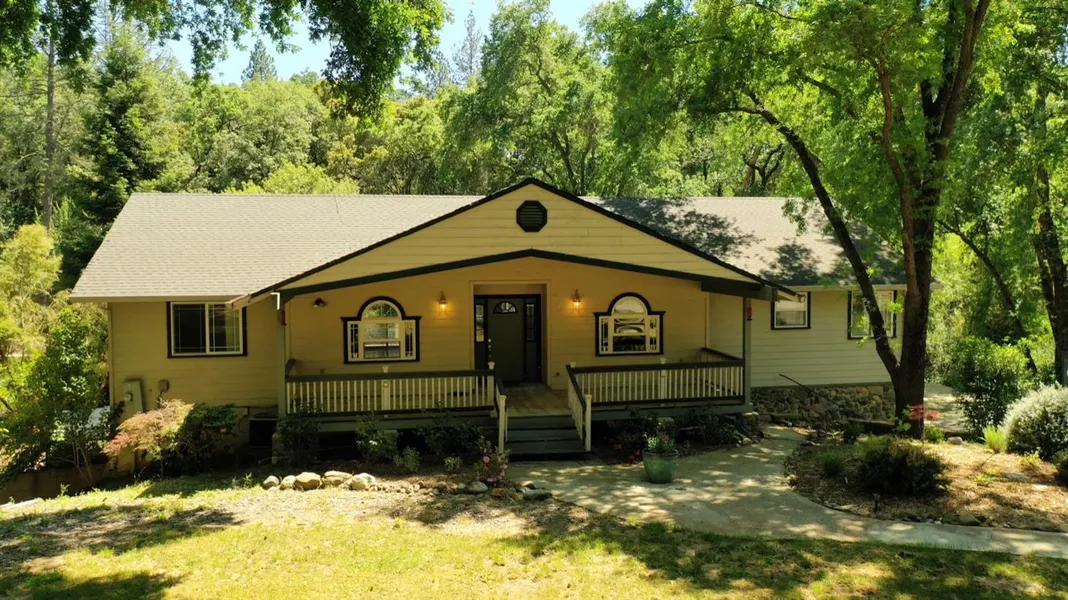 Honey Stop the Car! This home is a beautiful waterfront home that has a stunning view of Sutter Creek. This is a one-of-a-kind approximately 1,978 sq ft 3 to 4 bedroom, 2 & 1/2 bathroom custom home, with a 3 car garage and large walkout basement. The home boasts a spacious open floor plan with beautiful vaulted ceilings in the living room and primary bedroom, and a formal dining area near the kitchen. The kitchen has a kitchenaid Range and dishwasher and custom concrete countertops. The extra deep and wide 3 car garage has additional space that could be converted to boat storage, or extra living space. There is 1 large back deck and an uncovered deck with a spectacular view of the seasonal creek below. This house is a gardener's dream with beautifully landscaped front and back yards. There's also a greenhouse on the side yard and a horseshoe pit. There is private creek frontage and space to hang out on the bank. The house has a 2500 gallon water storage tank underneath the deck and another covered space for storage of garden equipment or whatever you like.(Note: this home has been virtually staged)