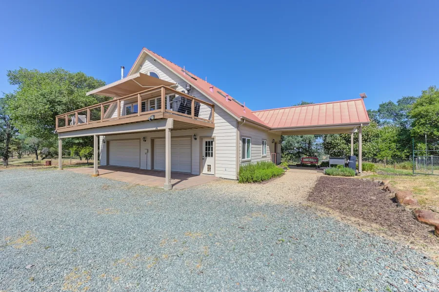 Imagine crossing the red covered bridge in Fiddletown and knowing you're almost home. This Fiddletown Appellation homestead sits on a 40-acre ridge with views from the Shenandoah Valley to the Sierra Mountains. This area is a viticulturist's dream with nearby wineries utilizing primarily Zinfandel and Barbera. Rather ride? Bring your horses; there are two fully fenced approximately 2-acre enclosures on the property as well as riding trails. The current 1352 sqft home is worthy of attention because of its details: 2''x6'' construction, metal roof, a well-loved Trex deck (from which the view is awe-inspiring), and concrete siding. The 38 x 19 foot garage has four bays and would please any mechanic. For the gardeners there is ample garden space with some raised beds and plenty of established fruit trees (orange, lemon, lime, apples, apricot, and pears). Heritage Oaks stud the property and, ...