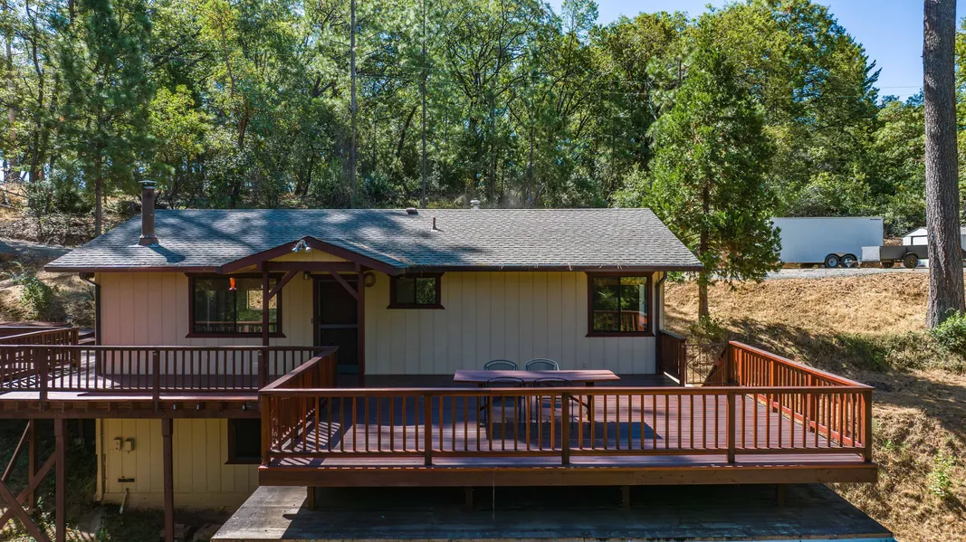 Nestled among the pines, this delightful home offers a perfect blend of comfort and charm. The open-concept design seamlessly connects the kitchen, dining, and living areas, making it ideal for both everyday living and entertaining. Step out onto the deck and take in the peaceful views of the surrounding trees, providing a perfect backdrop for relaxation. This home offers 2 bedrooms, complemented by 2 additional rooms that can be tailored to your needs. With convenient RV parking and a paved driveway for practicality.