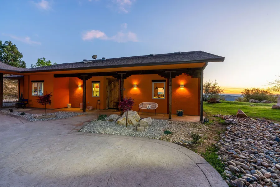 Nestled in a coveted neighborhood, this single-level custom home offers breathtaking, panoramic valley views of Mount Diablo from nearly every angle. The open-concept design creates a private oasis, with landscaped front and backyards. Relax in the backyard patios with lush lawn, rock gardens, rolling hills, and a lovely breeze. The gourmet kitchen boasts a massive granite island and custom cabinetry with pull-out shelves. Natural wood accents, including beautiful ceiling details, a hall bookcase, and a solid wood front door, add warmth and craftsmanship. The spacious primary suite includes an Italian-tiled bathroom, high-end faucets, a walk-in closet, and a cozy sitting area. Both the great room and bedroom step onto private patios. The oversized garage offers ample storage and a carport provides for additional covered parking. Equipped with a stand-by generator, the home is part of a fire-wise community. Located just minutes from local amenities, this home blends privacy with accessibility, surrounded by upscale homes. Lauren Lane is the perfect country setting-luxury, comfort, and natural beauty await.