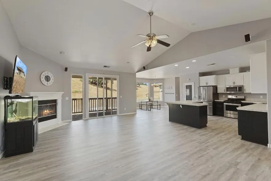 Experience the perfect blend of space, comfort, and country charm in the sought-after Lake Camanche Village neighborhood just minutes from boating, fishing, and outdoor fun at beautiful Lake Camanche! This move-in ready, ranch-style retreat sits on nearly 5 acres and features 3 impressively large bedrooms, plus a flexible 4th bedroom or home office. Step inside to soaring ceilings, brand new luxury vinyl plank flooring, and a light-filled kitchen with recently painted cabinets, a pantry closet for extra storage, a large center island with sink and bar seating- perfect for entertaining or casual family meals. The spacious primary suite is a private haven, offering two walk-in closets and a spa-like bathroom with double sinks, a soaking tub, and a separate shower stall. Two additional bedrooms are connected by an oversized Jack & Jill bathroom. Enjoy peaceful mornings and golden hour sunse...