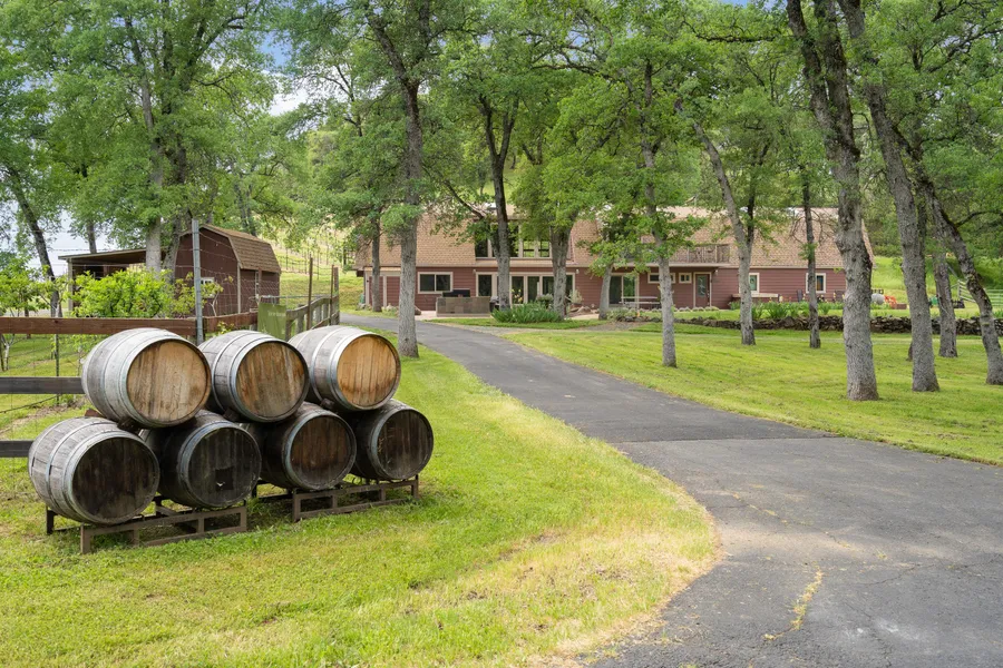 The ultimate destination. As you make the turn from Plymouth, the expansive vineyard countryside is breathtaking; in just a few short minutes youll be alongside a tranquil creek, driving under the ancient oak tree umbrella. You begin to feel the cares and stresses of a busy life being left behind. Then you make the final approach and turn up the driveway to the sprawling ranch house. Upon stepping out, you see and hear the beauty that surrounds this majestic 54-acre ranch. The eastern exposure allows for morning sun and afternoon shade. The home lives like a single story, soaring windows in the living room and large glass doors, invite you to let the outside in. The open concept living allows for everyone to gather and enjoy the activities in the kitchen, dining area and living room. Ranch life was well-thought-out during the extensive remodeling and updating of this home. Concrete floors throughout allows for ease of maintenance and endurance. The second story is comprised of a second kitchen with two bedrooms and a large bonus area. The current owners run a quaint Air B&B out of this area.