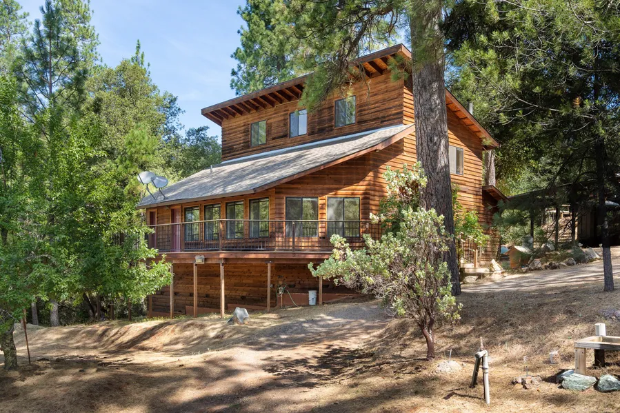 Updated home on 12 acres. This home has a lot to offer, the main home is 3-4 bedrooms 2 full baths with a half bath. The kitchen was just remodeled with new cabinets and counters, it's gorgeous. So much counter and cabinet space, this is a perfect gathering point. Located on the main level is the master bedroom with en-suite updated bath and walk-in closet. The exterior and interior of the home was just painted, the cedar siding looks rich and beautiful. Front and partial rear decks have been replaced. The living room is very spacious with vaulted ceiling, lots of windows and access to the newer Trex deck, you can enjoy the tree top views from inside or out. The upstairs has 2 bedrooms with an office or potential 4th bedroom, and full bath. Detached oversized garage, has a small studio apartment. The owners have enjoyed listening to the seasonal creek flow and the wind whistle through the trees. Minutes to Jackson, lots of privacy and updates, makes this a perfect home.