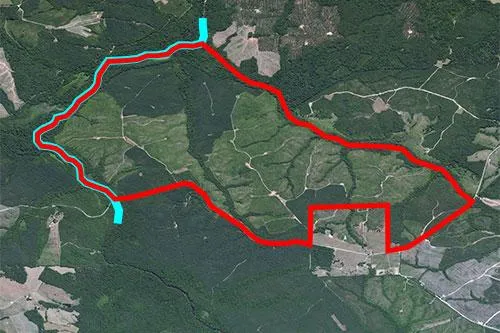 - Tract 2: 558 acres with 1000' of river frontage and 4370' of road frontage plus frontage on Stock Creek.
