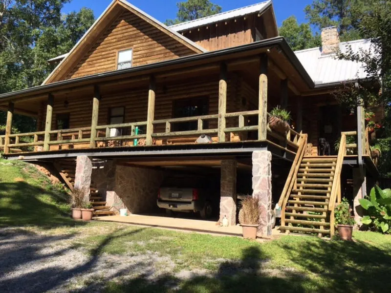 Looking for a log cabin on a Lake? Here it is. The beautiful 2955 sq/ft log home is located on 119 ac right next to the Homochitto National Forest. So you can hunt and enjoy your 119ac and hunt thousands of acres of the national forest right out your back door.Imagine sitting on your front porch overlooking the 3ac lake listening to turkeys gobble. The home features 4 bedroom 5 baths and comes fully furnished. The stone fireplace will make a perfect place to prop your feet after a long day fishing or hunting on the property. There is a large deck overlooking the lake just down the hill from the lodge. Head just a little further down the road and you will find the guest cabin on fosters creek. Fosters creek winds all through the mix of mature pines and hardwoods that tower above the creek. There are numerous roads and food plots on the tract.There is also a small clear cut on the tract th...