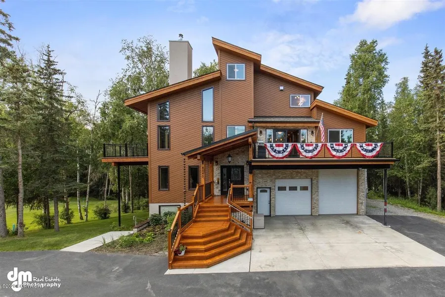 Bring your horses, bring your RV; bring your best life! Stunning custom hillside home with lodge-style entry in a private park-like setting, on a 1.75 acre lot between OMalley Golf Course and the Alaska Zoo. Open floorplan and two large decks that are great for enjoying the outdoors. All bedrooms are generously sized (smallest is 13x13). Granite countertops flow throughout the main level,adorning the kitchen, dining room, laundry and generously sized bathroom. Incredible chefs kitchen with butlers pantry, brand new granite countertops, massive center island with prep sink, and stainless steel appliances. Entertaining is effortless in this masterfully designed layout which allows you to engage with all your guests. Living room boasts soaring ceilings with plenty of room for Alaskan trophies or art. Master retreat is on its own floor for privacy with easy access to loft office or bonus room. No curtains are needed in this home nestled in the trees! This home has tons of storage solutions, throughout the house exactly where you need it (including hidden room in master retreat!). The finished basement is nearly 800 sf, 1BR 1BA mother-in-law apartment with a separate entrance. Circle driveway with plenty of parking for all of your Alaskan toys. Attached 32x26 ft garage has 12+ feet ceilings with one standard plus one giant automatic door. Plenty of room to park your vehicles and still have workshop space, or pull in your campe