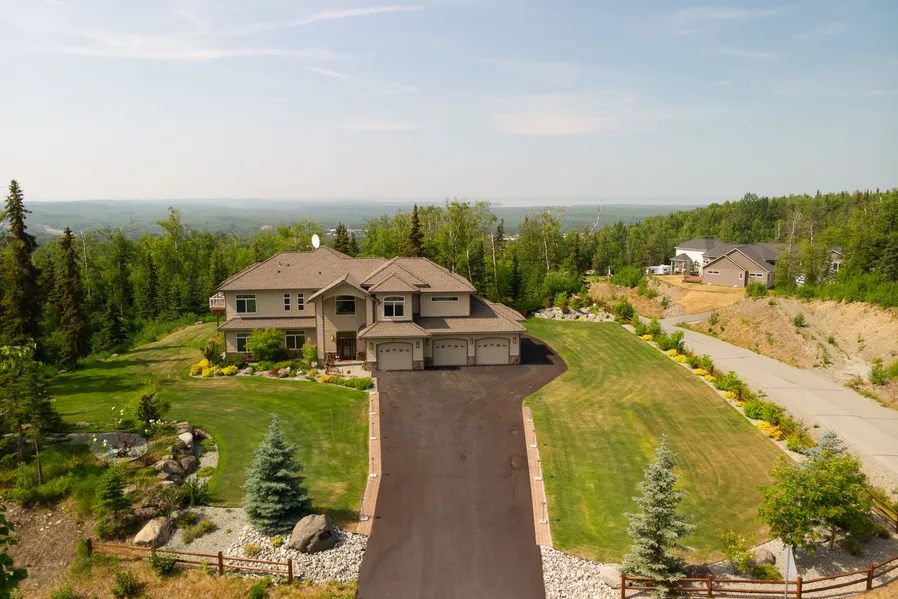 Custom sophisticated two-story home located on 1.08 acre corner lot offering majestic mountain views from every window. The exquisite open entry with porcelain tile floors, stately grand stairway and unique catwalk to master bedroom creates a sense of privacy and tranquility. Inviting open living, dining and kitchen with deck access for entertaining truly a timeless elegance with ornate details for entertaining! Dramatic wall of windows overlooks the entertaining deck, allowing endless nights of Alaskan sunsets! This home also features stylish 8 ft solid wood doors throughout, & 10 ft ceilings, double trey lit ceiling in dining, crushed granite in kitchen w/high end appliances, wine fridge, under & over cabinet lighting, custom full extension Hickory cabinets w/cider finish, crown molding, surround sound & Apple Smart wired, + custom designed entertainment ctr.! Private separate office w...