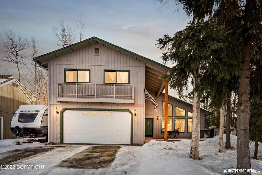 Beautiful Eagle River home shows pride of ownership, tons of sunshine and great flowing floorpan.Living room features vaulted ceilings with gorgeous exposed beams, large windows with lots of natural light. Spacious master suite features large walk-in closet, updated bathroom compete with soaking tub. Three additional bedrooms and full bathroom upstairs. Back yard is fully fenced.Large decks in both the front of the home and the rear. The rear deck is reinforced and wired for a hot tub. Garage door is newer and is taller than standard bay door. This home is beautiful, in a convenient location and it is a MUST SEE