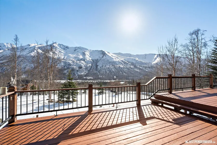 Experience sweeping mountain views from nearly every room in this beautifully updated 22 acre horse property. Relax or entertain on the expansive, wraparound deck while watching moose, lynx, eagles, dall sheep & bears on the mountain or crossing Eagle River below. Inside, sunshine pours through the windows in the tastefully updated kitchen & living area. This 3-bedroom home offers two en-suites including a completely remodeled primary ensuite bathroom with walk-in shower. The spacious barn below the home features a metal roof, center alleyway, and two tack areas. Four horse stalls were thoughtfully built to swing panels to create room for trailers, ATV's, vehicles and more. Large hay loft with trap door and rolling chain hoist the length of the loft for easy storage. Pastures, diverted water for animals, feeders, and fencing. This is truly your home away from the city to relax and soak in the unobstructed views surrounding you.