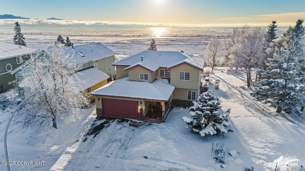 Experience breathtaking bluff views of the Turnagain Arm from this beautifully designed home, perfectly positioned to capture Alaska's natural splendor. An open-concept kitchen and living room create a bright, welcoming space ideal for entertaining or relaxing by the panoramic windows. The main floor features a spacious primary suite complete with a generous walk-in closet and a private serene atmosphere. Upstairs, you'll find two additional bedrooms and a versatile bonus flex spaceperfect for a home office, media room, or play area. With its thoughtfully planned layout and unrivaled views, this home offers a rare blend of comfort, style, and scenery. Don't miss the chance to make it yours.