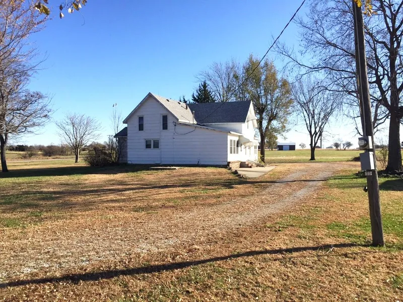 Excellent location on this 30+ acre property along the paved Scipio-Greeley Rd. in Northern Anderson County Kansas. Great spot to build or renovate existing older Farmhouse.. Large yard & several useful outbuildings with concrete floors, including a detached 3 car garage. Natural gas, electric & rural water in place. Plenty of ares for cattle/horses in fenced pasture with pipe corral & automatic waterer. Approximately 9 acres m/l of Brome hay field that could also be fenced to expand your grazing area if desired.