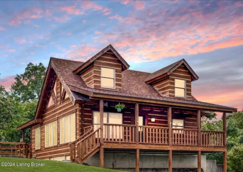 Beautiful log cabin, professionally built on 2.73 acres. 4 miles from Van Buren ramp on Taylorsville Lake! 6.5 miles from Bluegrass Parkway (at US Hwy. 53). Check out this crafted home with three bedrooms and two full baths. Main level features great kitchen and breakfast area, large living space, handicap accessible primary suite and expansive views through the A frame window wall. Second bedroom is upstairs with closet and additional storage space. Lower level features the third bedroom, full bath, laundry and garage. But the best seat in the house will be outdoors on your front deck or covered side porch with sunsets you can't get in the city!! Come home to 3342 Mount Eden today!