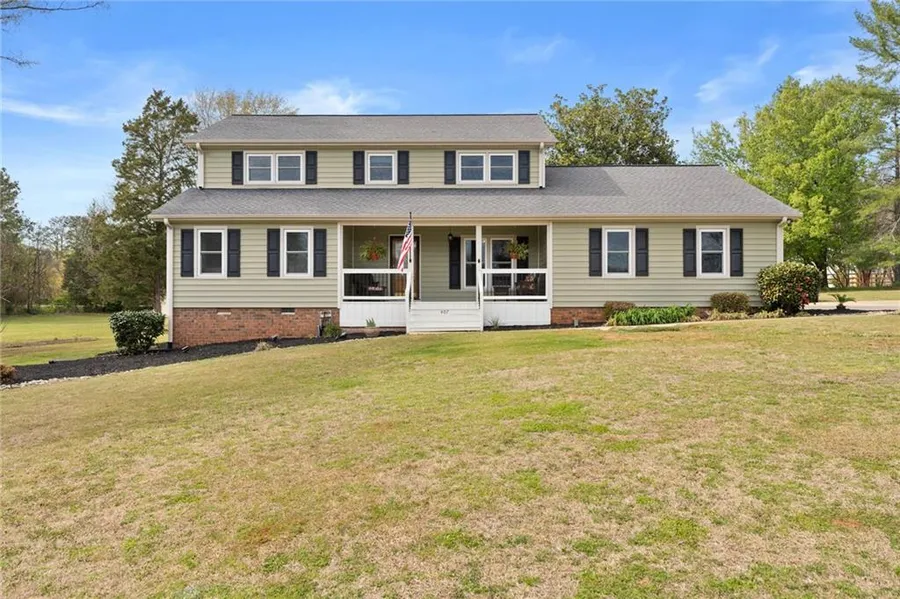 Welcome to your front porch on this stunning Southern Charmer on 2.04 acres in Quail Hollow Subdivision. There is 2800 /-SF, with 3 bedrooms, 3.5 baths. Many updates by current owners; to include all 3.5 bathrooms, gorgeous kitchen, and laundry room. New interior paint, and additional crown molding were added. The upstairs master bedroom suite has French doors that lead to 2nd story balcony, walk-in closet, and the large, updated master bathroom with glass/tile shower and luxurious soaking tub to relax in. New carpet in all the bedrooms, one of the guest bedrooms includes a full bath with walk-in shower which could be considered second master bedroom. Newer Bamboo flooring in main living area, newer siding, multiple new windows & AC unit duct work done 2023. There is an abundance of windows to offer natural lighting throughout! Two car attached side entry garage with storage room, in addition, there is a detached two bay garage with electricity for your hobby cars, motorcycles, man cave, home gym, endless possibilities! Gutters have been updated and added leaf guard covers on front gutters. Septic inspected and lines cleared in 2023. Fixed the sump pump. The upper balcony was rebuilt, and deck and front porch have been stained. Replaced kitchen/garage interior door 2024. This beauty will not last with all these beautiful upgrades and on 2 acres, great schools, and NO HOA. Plenty of room for your RV or to add a swimming pool since the septic is in the front yard. Convenient to shopping, VA clinic, hospitals, I-85 and more. Start packing!