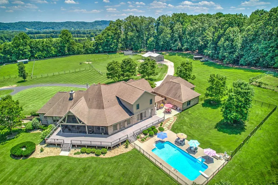 Coming Soon! July 26th, 2023. A true hidden Real Estate Treasure nestled between the Clinch River and Norris Lake! This one-of-a-kind, custom-built home is the perfect find! Located just minutes from I-75, with short drives to Norris Dam State Park and Marina, Waterside Marina, Big Ridge State Park, and several public access ramps on both Norris Lake and the Clinch River, your water sports or fishing activities are just around the corner! This home beams with privacy and comfort while also offering amazing entertaining spaces. From the inground saltwater pool to the 483 sq ft screened outdoor space equipped with gas and water hookups for an outdoor kitchen, there's something for everyone. There are four en suites with walk-in closets. Two upstairs share a completely separate kitchen, and eating area with an additional bonus area. The 723 sq ft guest house would make a wonderful mother-in-law suite or ''apartment'' for a college student or a young couple just starting out. All these wonderful features along with a stunning owner's suite provide plenty of personal space for you and your overnight guests. Other features include an amazing stone fireplace, a gourmet kitchen with a gas cooking stove and an Electrolux Refrigerator, three large bars for seating, an additional formal dining room, a central vacuum system, and an Aqua Clear water system throughout the entire home. Just imagine what you could add to the unfinished, plumbed, 2115 sq ft basement area! Along with extra storage, there's room for a family/game room, workout room, movie theater, craft room, workshop, homeschool area, and more. A three and two-car garage with a half bath, and outdoor driveway areas provide plenty of parking. Additional outdoor hot and cold water spigots, along with an irrigation system will assist in keeping the grass a lush green. Surrounded by trees for privacy, there are also three cleared field areas. Two produce hay, one is enclosed with coated wire fencing for your horses or other animals, a 24'x12'x28' Morton barn with a tack room, two stalls, and a separate space for large farm equipment. There is also a run-in shed and a hay storage building. This is a beautiful private home but could be used as a Bed and Breakfast (Meets Anderson County requirements), Corporate or Church Retreat, Wedding/Event Venue, Summer Camp for private horseback riding or swimming lessons, or could also be divided into large parcels for family or friends to build their dream homes on. With all the road frontage available, developing is also an option.