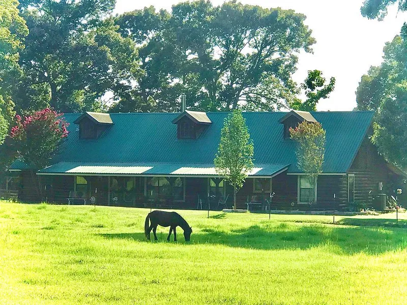 Want country living? Come see this custom built Satterwhite log home on 7.6 gorgeous acres. Just 10 miles from the loop and 45 miles from Tyler. Property is fenced for livestock and has pipe fencing along road frontage, has a 40x60 barn, round pen and a 1/2 acre pond. Home has 4 BR and 2 baths, with double vanity, large jacuzzi tub and walk-in shower in the master bath. The kitchen has a triple sink, JennAir gas range with grill, lots of cabinets and built-in pantry. The large utility room is just off the kitchen with additional storage. The inviting living room has a ceramic wood-burning heater and vaulted ceiling. New floors throughout. Porches, front and back, run full length of the home for you to spend time outside enjoying the view.