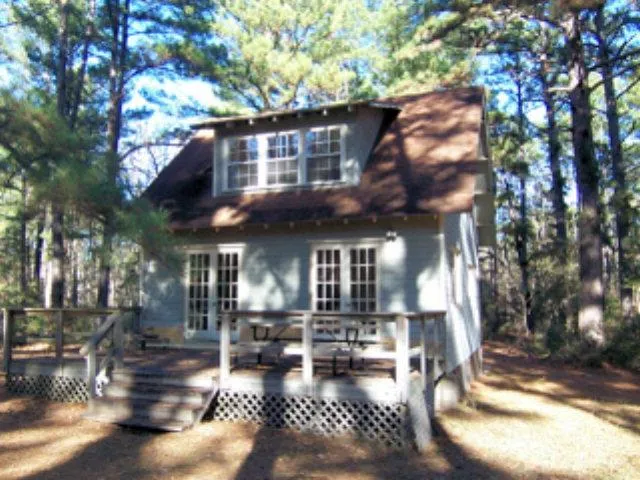 Come get away from it all to this remote cabin located in mature 21 year old pines near the Anderson-Houston County line. Also includes about an 8 acre pine plantation of 9 year old trees across the road. Relax on the large shaded deck. Cabin has open concept with one sleeping area down, with living and dining, plus upstairs is a large loft area with more sleeping areas. Bath and kitchen areas will require some finish work but works OK for weekend place. Utilities currently disconnected. Located on a deeded easement from ACR 108. Property begins at the locked gate off of ACR 108. Perfect place for a Veteran Land Board loan with 5% down to qualified buyer on a 30 year fixed rate loan up to $100K.