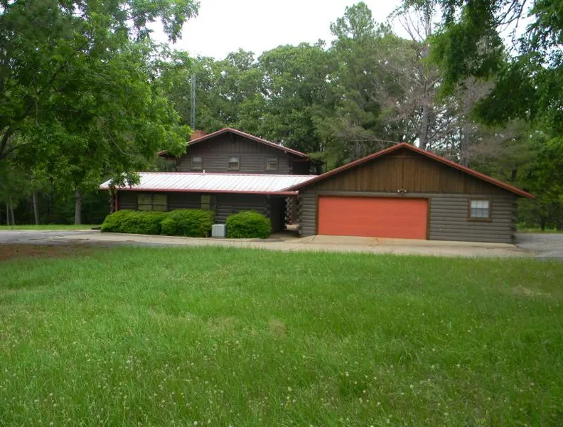 Beautiful rolling East Texas land, mixture of lush meadows and heavily wooded areas. Charming log home overlooking a clear, cool fishing lake nestled among huge pines and oaks. Tennis court, horse stables, storage area and equipment shed.
