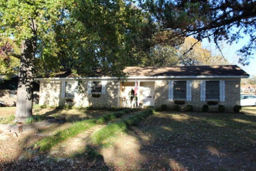 Cozy Brick home on tree-shaded corner lot. This 3 bedroom, 2 bath home has a large and open living/dining room and eat-in kitchen. Good for family get-togethers. Sliding glass doors lead to open patio out back. Two storage buildings (one is only 2 years old) in backyard. Some updates have been done. Owners say foundation is in need of some repairs as indicated by minor cracks in ceiling and walls. Fenced backyard.