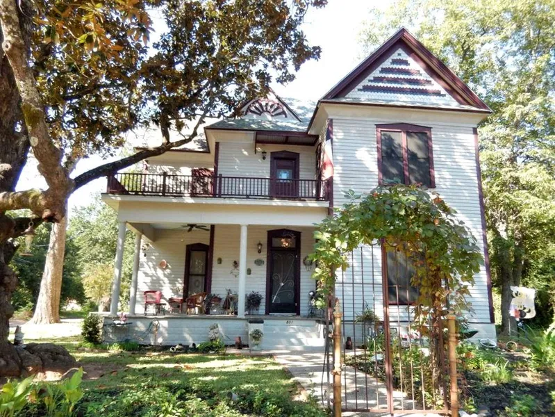 Historic Queen Anne for sale that has 3 bedroom, 2 bath built in 1899 of cypress and cedar has been lovingly restored! The charming entry porch wraps around the front and side of the home and has a ceiling fan to keep you cool on a warm East Texas day. With heart of pine and oak flooring, original glass windows, two 16 seer Lennox 3 ton air conditioners (1 upstairs, 1 downstairs), R-40 or better attic insulation & radiant barrier, new electrical wiring, and much more, you will appreciate the historical qualities of the original construction along with the energy efficient results of the updates. This 2492 sq. ft. historic home for sale has one bedroom and bath downstairs plus living area, dining, kitchen with tin ceiling. The utility room has room for storage, extra refrigerator/freezer, a small office space, and opens to the new deck with Sunsetter awning. The stairway to the upper level opens to a large landing for extra living space. Also upstairs are two bedrooms, spacious bath, and tree shaded balcony that wraps around the front and side of the home. Lawn and landscaping added by Sellers creates an inviting outdoor space. An ancient magnolia tree shades the corner of the lot and there is plenty of room at the back of the house to build a garage. All appliances convey (2 refrigerators, washer, dryer, & stove) as well as televisions. Sellers will provide Buyers with a 1 year Residential Service Contract. Must see this move-in ready historic home! Contact Dana Staples for more information!