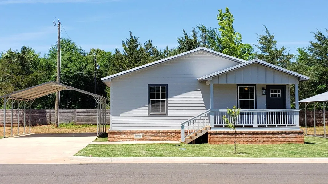 Charming new energy efficient home conveniently located in Palestine, Texas! Wooden steps lead to the covered porch ofthis 1175 sq. ft. home with an open living/dining/kitchen area, granite counters & subway tile in kitchen & bathrooms, andvinyl plank flooring throughout the home, for easy maintenance. Sliding barn door entrance to master bath! New stainlesssteel stove, microwave/vent-hood, and dishwasher in kitchen. Custom shelving in closets. Home is pre-wired for phone, high-speed internet, and alarm system. Two car carport with stairs leading to side deck that accesses kitchen area. Move-in readyand waiting for you!