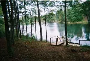 3.857 wooded acres situated on an 8-acre lake with beautiful lake views. Perfect for weekend retreat with 2-room cabin with woodburning stove and community water and electricity. $49,500.