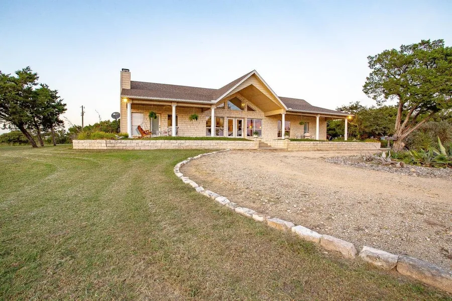 18.748 Acres located in Harmony Valley in the heart of Bosque County. This ranch is 2 hours from Dallas/Fort worth area and offers the best of both worlds-Country life with majestic views and low maintenance land for you to enjoy! The land has an 80 ft. elevation change; the home is located on the highest point of the property, sitting at 980 feet above sea level with views all the way to Hamilton County. The 3-bedroom/2.5 baths was built in 2003. The house is 2161 sq. ft. with 1000 sq. ft. to enjoy the sunset or the sunrise. The crowning jewel of this home is the double-sided rock vent-less fireplace that sits in the center of the home. The fireplace and living room make this home so cozy and inviting to entertain or visit with friends. The large windows in the living area provide a tremendous amount of light inside the home and allow the sunrise and sunsets to be seen, as well as the vast view of harmony valley while sitting inside the living room enjoying a warm fire. The home offers a large open concept dining room just off the living room as well as a wet bar. The kitchen is an open concept with ample storage, gas range and walk in pantry, as well as offering a breakfast nook that extends to the screened in porch. You will enjoy cooking on the gas range, that is located on the island with high bar top and seeing the view of the fireplace. The custom stone home has crown molding throughout, vaulted ceilings in the main living area, tile floors in the living, kitchen and baths and real oak wood floors in the bedrooms.