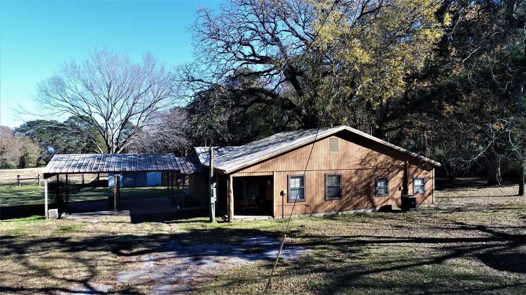 This property would be ideal for anyone looking to escape the city. This mostly wooded 32-acre tract has a nice size spring fed pond tucked away in the woods. The three-bedroom, two bath cabin with metal roof needs some TLC, but would fix up to be a very nice weekend home. The home has carpet and vinyl flooring and is nice sized. Outdoors, youll enjoy the large, covered patio for relaxing and barbecuing after hunting. There is a covered carport on slab, as well as several sheds out back for storage. Call us today to schedule a showing on this great weekend get-a-way!