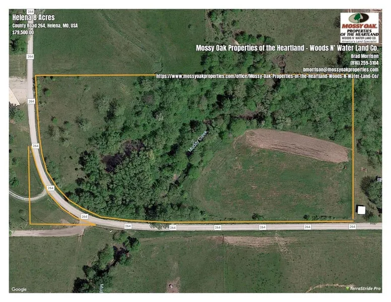 Muddy Creek runs thru this tract providing water to the many types of wildlife here. County Road frontage with a hay field or put your own food plot in!