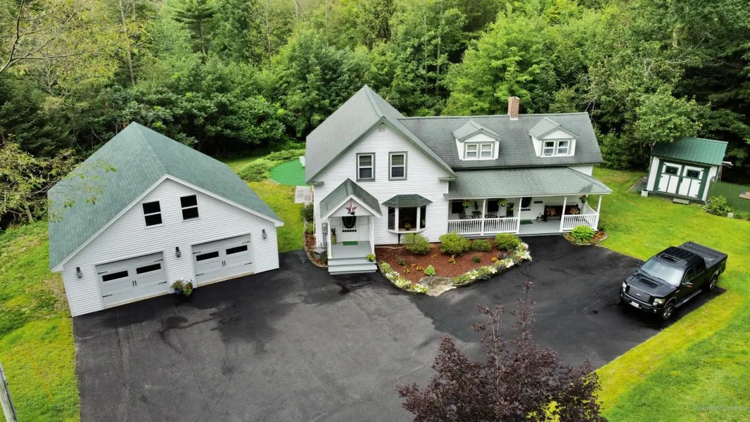 Imagine enjoying an iced cold beverage on the nostalgic farmer's porch of this meticulously maintained home in Turner, watching the perennials bloom and birds sing. With 3 bedrooms featuring ClosetMaid equipped closets AND a home office, you'll have all the space you need. The primary bedroom boasts extra storage with 2 lofts - or use them to create a nice ambiance. The living room is brimming with sunlight from the gorgeous oversized windows, illuminating the 2018 oak hardwood floors. Kitchen is fully applianced with stainless steel and has nice hardy tile countertops. Along with a huge deck, this home features a 30'x32' 2 car garage built in 2020 with additional space above, ready to be finished AND a separate workshop shed. Driveway was also freshly paved in 2020. If this loved home offers the privacy, space, and location you've been looking for, make sure to get in quickly.
