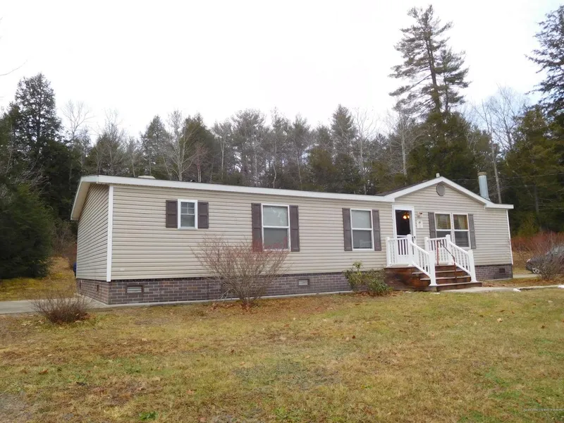 Privately located double wide mobile home on 1.35 acres. This 3 bedroom, 2 bath home with open concept features a livingroom with wood burning fireplace and vaulted ceiling, large kitchen and dining area, primary bedroom with full bath, garden tub and skylight, laundry room leading to back deck and private backyard.