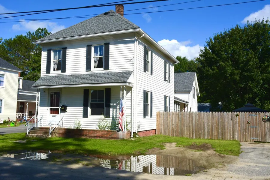 SPACIOUS 4-bedroom two-story home in quiet neighborhood; conveniently located between Lewiston, Durham, Topsham and Brunswick; quick access to I-295; many original architectural features including tin ceilings, bulls-eye molding, wide pine bedroom floors with original square nails; oak floors in dining, living and den; living area has been expanded into the attached barn --- upstairs is now a very large primary bedroom; barn 1st floor is partially finished for a large exercise space, home business space, or ''person cave.'' REALLY GOOD BONES-- this home just needs your personal touch for cosmetic updates! Lovely bike path/river walk with scenic river views is only steps away! Great investment potential at this price!
