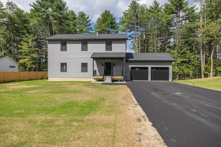 Nestled on a spacious 1.1-acre lot on the outskirts of Lewiston, this beautifully crafted Modern Colonial-style residence offers a perfect blend of comfort, functionality, and scenic charm. Adjacent to a tranquil pond, the property provides picturesque views in the summer and a delightful skating area during the winter months. The rear of the home features a full daylight basement with expansion potential, complemented by a low-maintenance synthetic deck that overlooks the private backyard. Inside, the home showcases an efficient and thoughtful layout. The first floor includes a welcoming foyer with closets, a mudroom, and a dedicated laundry room. The kitchen is bright and inviting, featuring quartz countertops, painted wood cabinetry, and high-quality appliances. A peninsula adds extra seating and storage, while the adjacent dining area opens directly to the deck ideal for enjoying morning coffee amidst nature. The spacious living room is finished with durable waterproof vinyl flooring, which extends throughout the home. Upstairs, you'll find four generously sized bedrooms and two full bathrooms. The primary suite boasts a large walk-in closet, an additional closet, a double vanity with LED lighting, and elegant tile flooring. For those seeking additional living space, the daylight basement is ready for finishing, complete with installed windows and a pre-plumbed drain for a future bathroom. Additional highlights include transferable warranties and modern finishes throughout. This exceptional property is sure to attract attention don't miss your opportunity to make it yours!