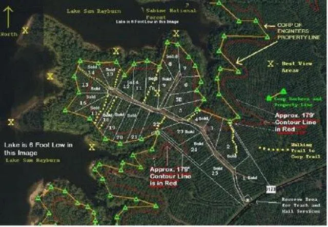 Veach Escapes is a quite lake community that has a 1200 square foot minimum build and no mobile homes. The community has underground utilities and an active HOA. Beautiful views of the lake a the East Texas Pine Forest. The area is gorgeous and there are builders in area just waiting to build you perfect lake escape or retirement home. Lot 21 has 194 feet of waterfront.