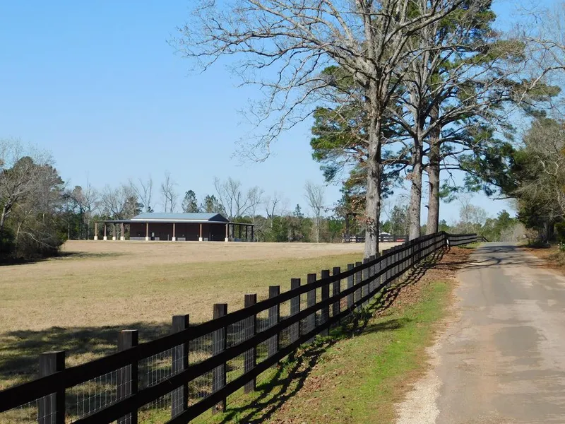 This Diamond in the rough is a must see if youre looking for 50-60 acres of land close to Sam Rayburn and minutes from Lufkin. Completely fenced, mostly improved pasture with small clusters of trees and ready for livestock. 6 acre constant level lake, can be fed by a well. 500 SF 1/1 guest cottage, Large 2/2.5 Barndominium, 14 eve height, 2- 13 x 14 coil up doors, 2,200 SF shop, 1,640 SF office, pull through access, built in cabinets, walk in closets, on demand gas water heater, 200 amp service, underground power, 36,000 SF rock parking area. Too many amenities to list.