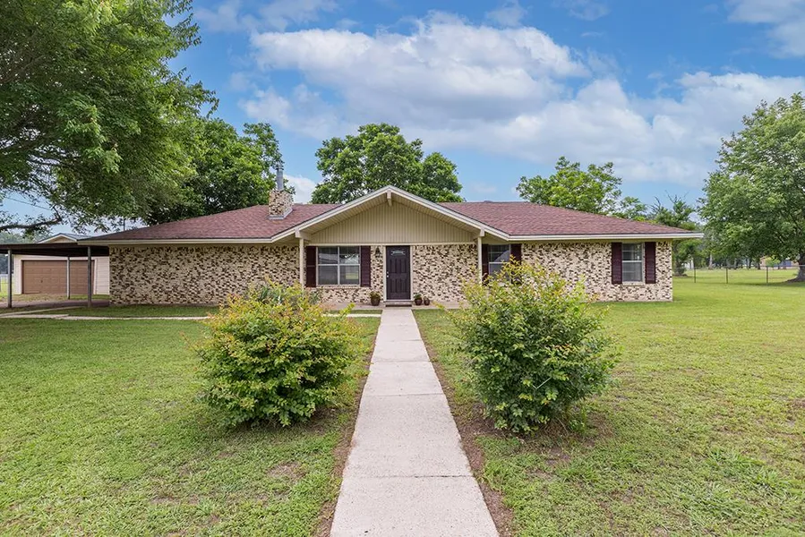 Completely Updated and Move-In Ready home on almost 4 Acres of fenced improved pasture land! This beautiful brick home has 3 Bedrooms, 2 Bathrooms, an open concept, large living area with a Cathedral ceiling and wood burning fireplace, and new luxury vinyl plank flooring throughout! The modern kitchen features quartz counters, all new stainless steel appliances, upscale cooking range with desirable air fryer oven, and a large deep farmhouse sink with an attachable cutting board and other accessories. It includes an attached 2 car garage, an attached 2 car metal carport, and two additional detached garage/workshops on a concrete slab for ample storage space! It also has a barn with two attached 6ft tall livestock holding pens. The manicured land features multiple producing pecan trees and a fish pond that would be perfect for livestock access. The property is fully fenced and has a gated entrance at the front driveway and at the back of the property near the furthest workshop. S ome of the photos are virtually staged and the fireplace mantle has been virtually painted to match the front door.
