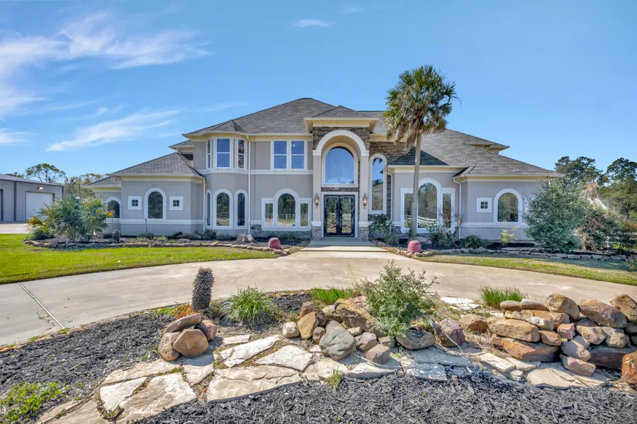 Beautiful custom home sitting on approximately 20 acres of pastures. Gated entry with concrete driveway ensures privacy. The upgrades are too many to list. Update including flooring, paint, granite and tile work was done 2 years ago. New roof put on in 2023. Open concept with 20 foot ceiling. Iron hand rails accent the curved stairway to the upstairs that is connected by a catwalk. The natural sunlight will light the entire house with the floor to ceiling windows. 5 bedrooms, 3 and 1/2 bathrooms, large kitchen with huge walk in pantry, office with built in custom exotic wood credenza with 14 foot ceiling, game room, closets and cabinets are endless, balcony, pool with waterfall, palapa with outdoor kitchen and pond. 60x40 enclosed shop with 3 roll up doors including a 1600 square foot of climate control with full bath and kitchenette. this could be used as an apartment, mancave, etc. 60x...
